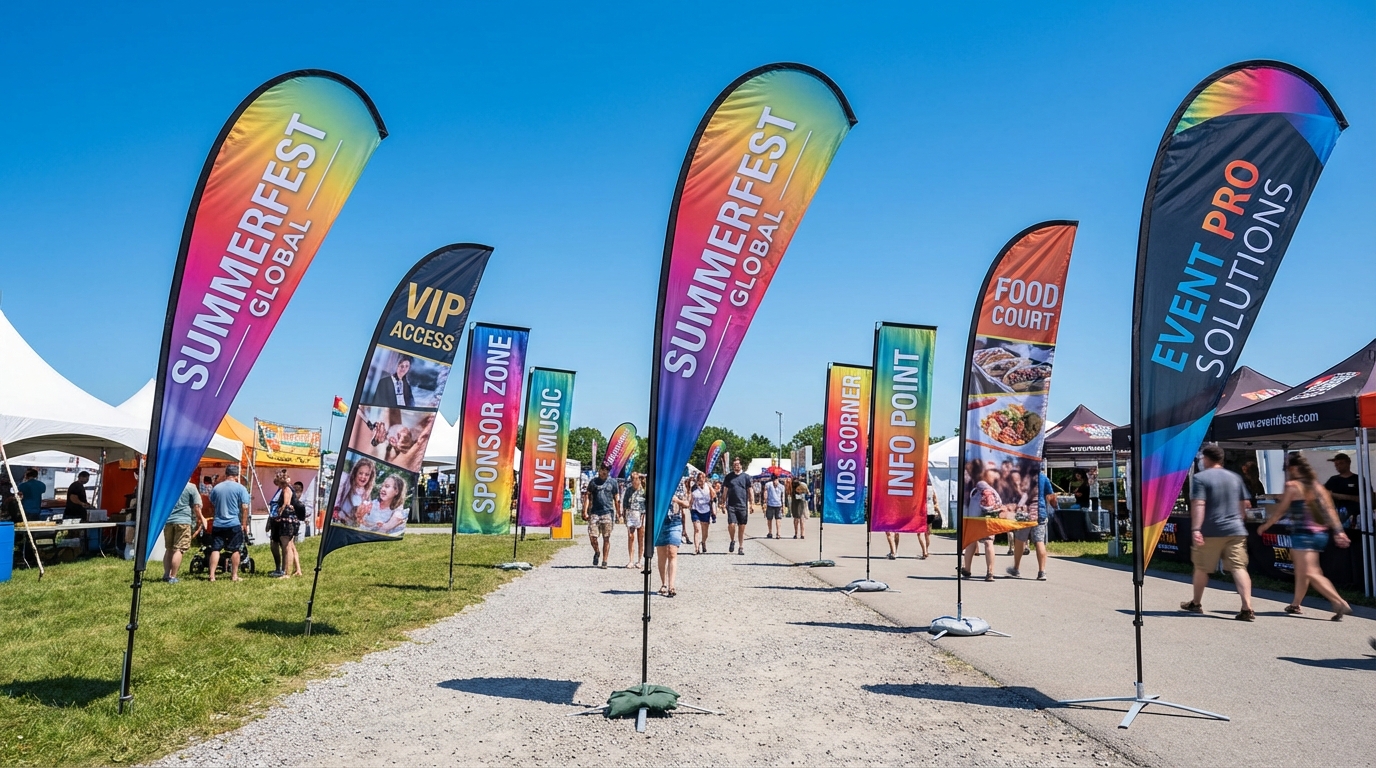 Bâches, feutrines, beach flags : Communiquez en grand, partout et en toute occasion